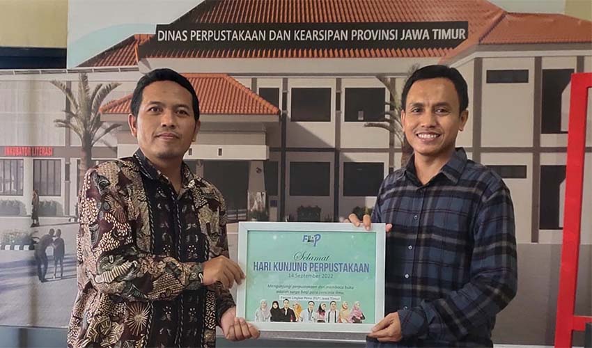 - FLP Jatim menyerahkan ucapan Selamat Hari Kunjung Perpustakaan kepada Disperpusip Jatim