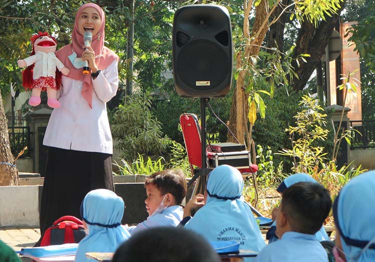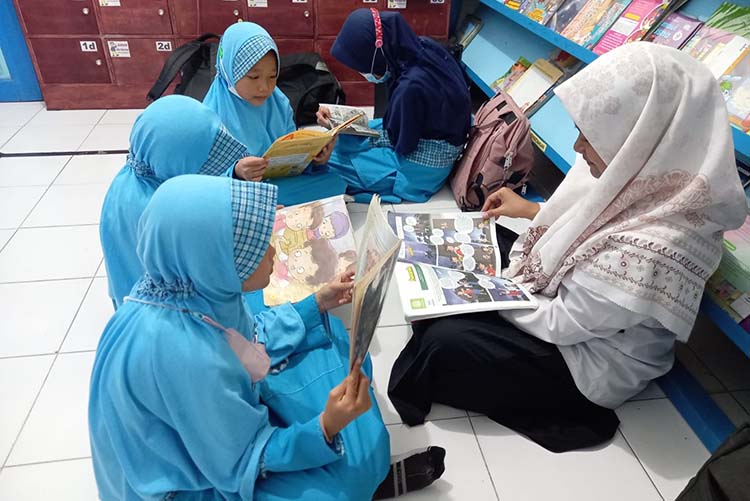 - Ketua FLP Lamongan membawakan dongeng di hari kunjung perpustakaan