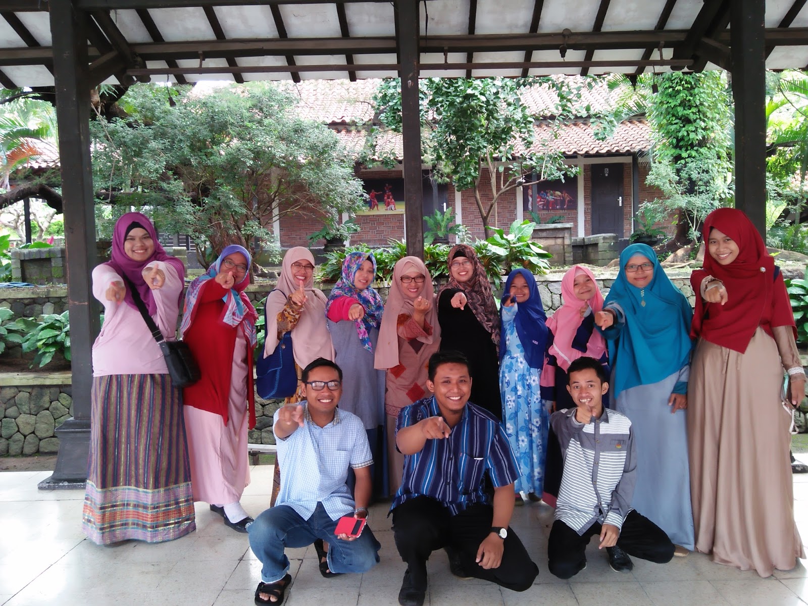 Pulang jalan-jalan pagi, kami bergegas makan dan bersih diri, lantas foto bersama. Kalau tidak salah ada mbak Yovan, mbak Riri dan teman teman yang lainnya. “cheese”, satu dua “cekrekkk!”