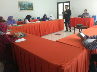 Materi pertama diberikan Mas oleh Rafif Amir yaitu tentang proses menemukan ide. Setelah itu peserta diberikan tantangan menulis selama sepuluh menit tanpa henti. Peserta yang berjumlah sebelas orang iniberhasil menyelesaikan tantangan menulis tersebut.