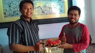 Sebagai simbolisasi, dari beberapa kue dan makanan yang terhidang di meja, kami memilih sepiring semangka untuk serah terima. Semangka dengan warnanya yang menyala dan sekaligus singkatan, Semangat Kakak!